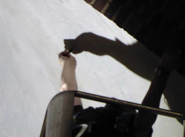 Nun wird dieser Punkt mit einem Stift als kleines Kreuz ans Gewölbe gemalt.