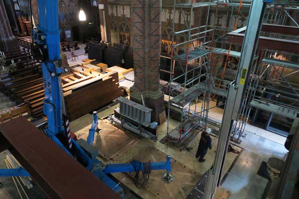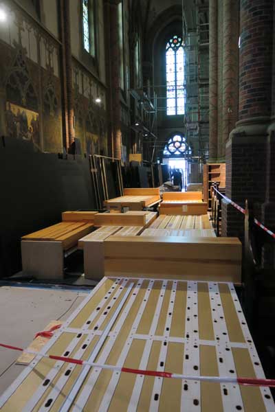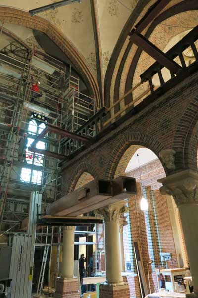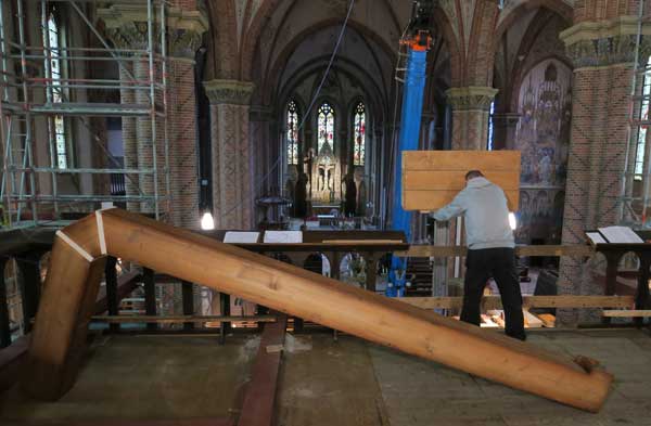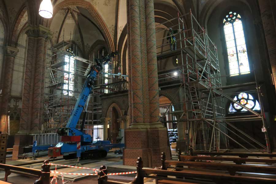 Im Kircheninnern wird weiter an den Gerüsten gebaut die für den Aufbau der Orgeltürme nötig sind