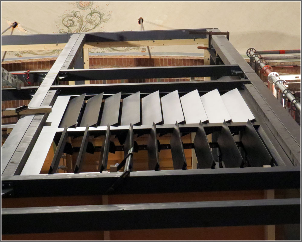 In dieser Woche konzentrierten sich die Montagearbeiten auf die beiden mittleren Orgeltürme.